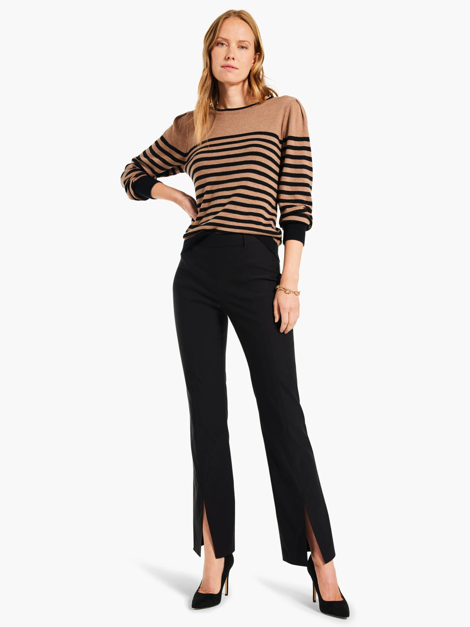 An update to our forever bestselling Wonderstretch pant, this style is the definition of easy plus elevated: the perfect pant for 9-5 or as part of an event-ready ensemble. Made with generously stretchy pull on ease but with belt loops to elevate and give you the opportunity to accessorize. With a slight bootcut shape and front seam detail that opens into a fun front split that adds more shape.