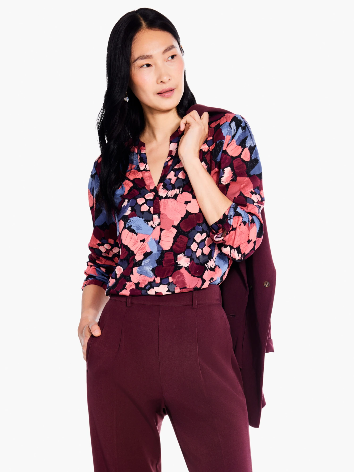 Made from a bestselling, super soft and super stretchy jersey knit, the Autumn Bloom is easy, fun, and completely adaptable to your style. Made for dressing up or down, we love the placed print on top of the knit texture that adds some ‘pop’ to your outfit in more ways than one. Pullover for ease, with a split neck detail and a slightly longer length that’s designed to sit just below the hip.