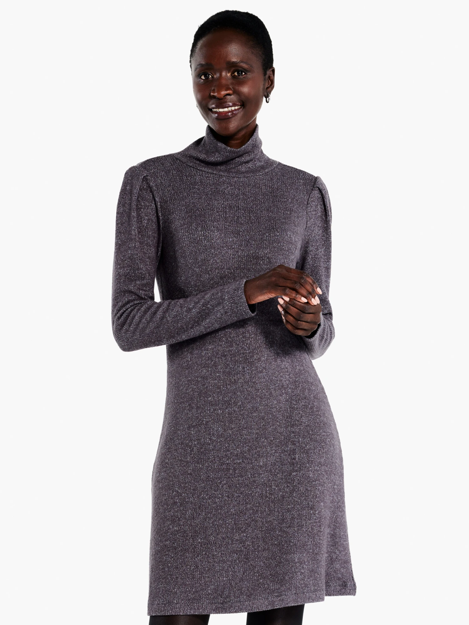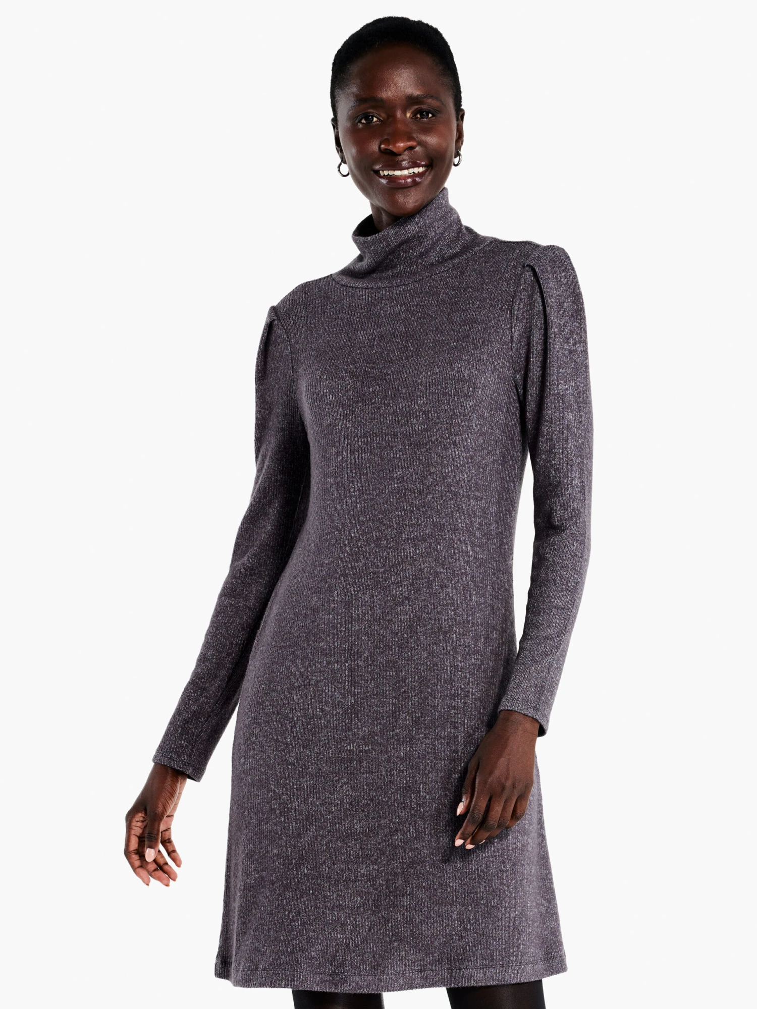 The problem: how to wear more of our Cozy Rib fabric. The solution? Make it a dress! This effortless, super stretchy knit pullover features a funnel neck, full sleeves, and a hem that falls just above the knee. Wear it under your favorite blazer or fashion jacket to create an elevated look with ease. Whether you tell people that it’s as cozy as your favorite ribbed layering tee is up to you.