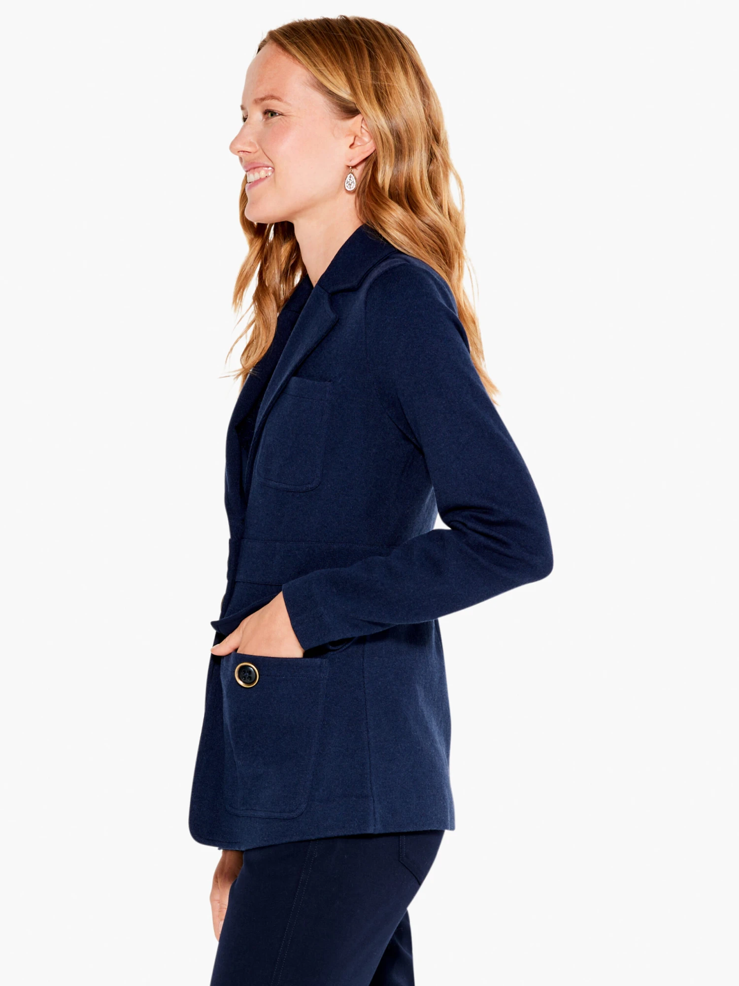 A classic blazer with oversized patch pockets — perfect for red pens or whatever else your keen eye needs — and panels to add texture to the monochrome and offer a flattering silhouette. Subtle details like the oversized buttons and elegant notch collar elevate the look. Designed to fall just at the hip.
