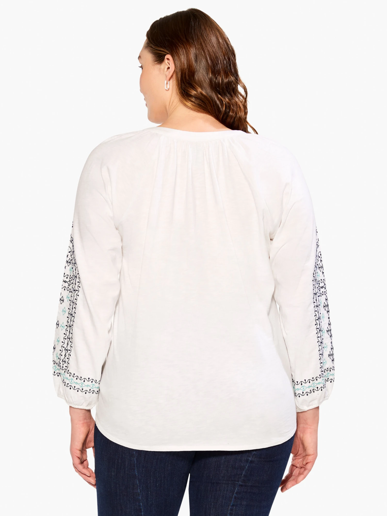With placed indigo embroidery details, this flowing lightweight top is the perfect middle ground between a button-down and traditional (and on-trend) tunic look. An easy button-front V-neck silhouette made from 100% cotton in a supremely soft slub. The flowy raglan sleeves add to the vintage look and feel. Designed to have a little extra length and sit below the hip.