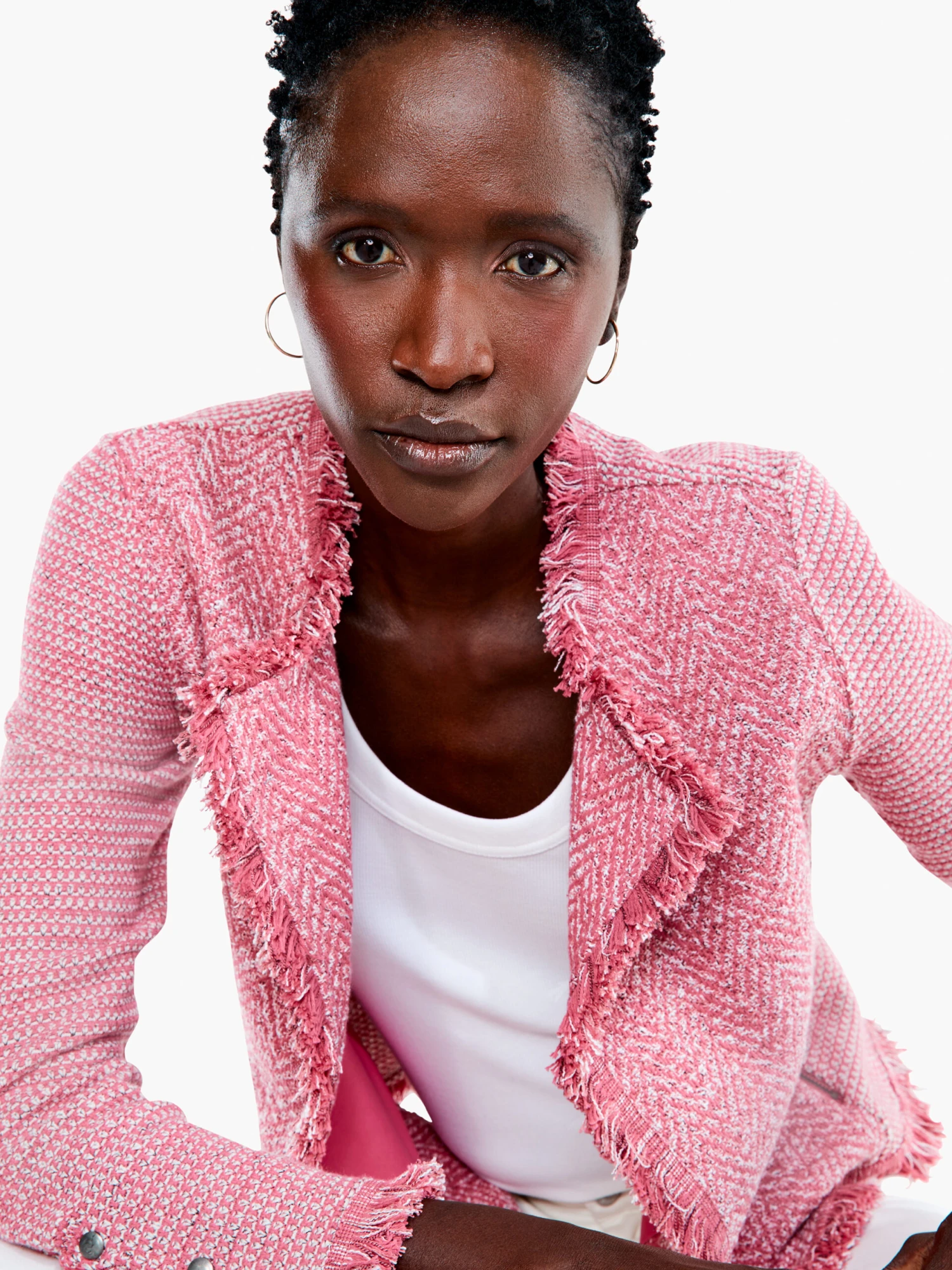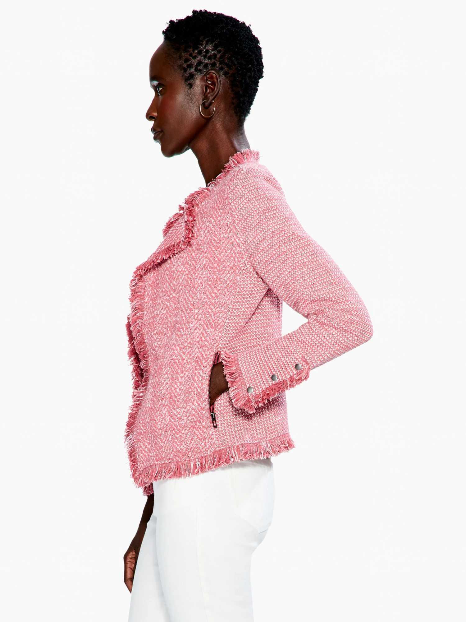 Happiness in jacket form, the Fringe Mix is an ICO(NIC) style: a tentpole style and bestseller, season after season. The classic silhouette with a twist adds fun to the workplace or just your everyday. We’ve added thoughtful details like the snap cuffs and the namesake fringe hem. An open front makes it easy to throw on and take off over the course of your day. A wearable pick-me-up.
