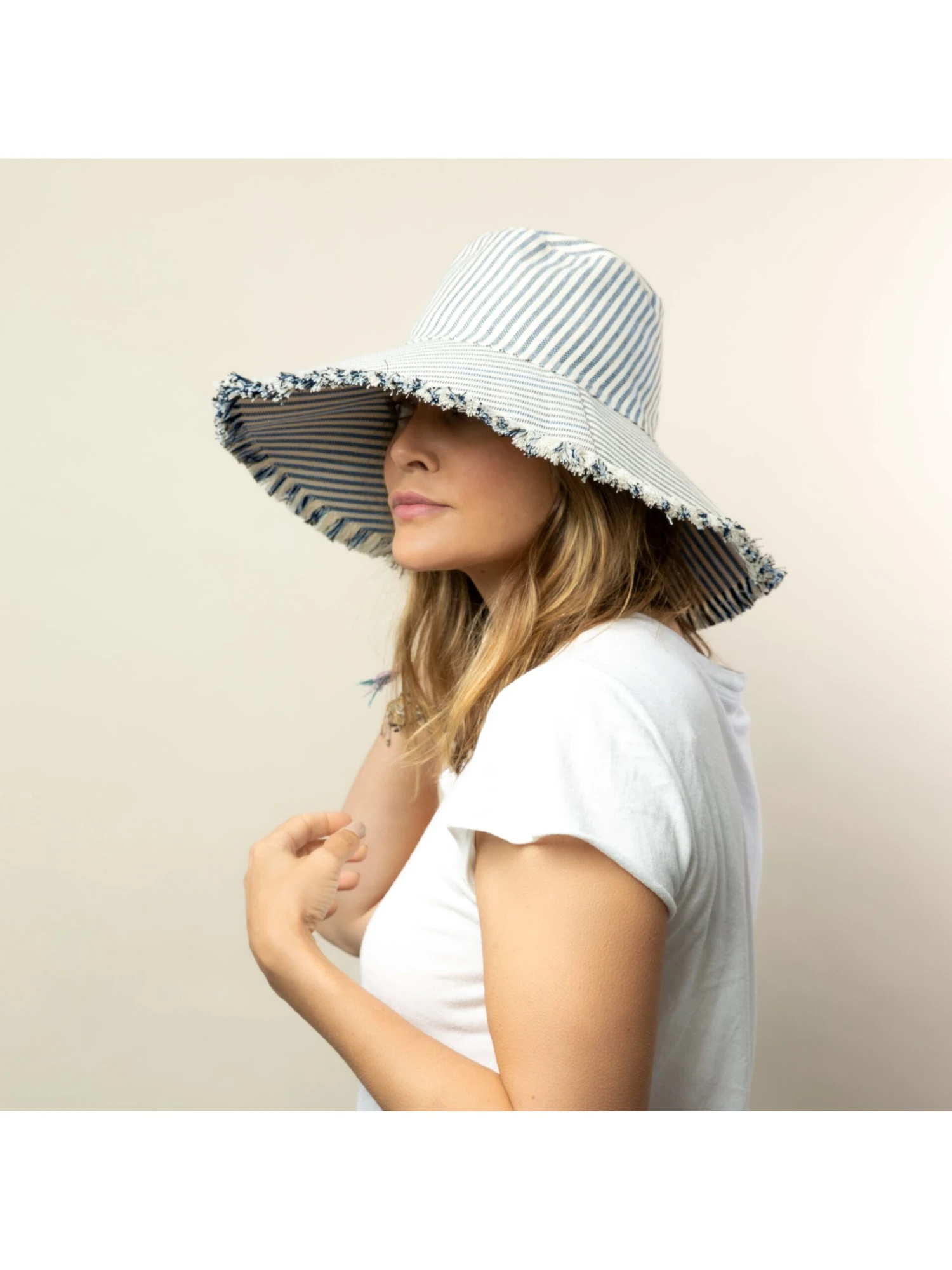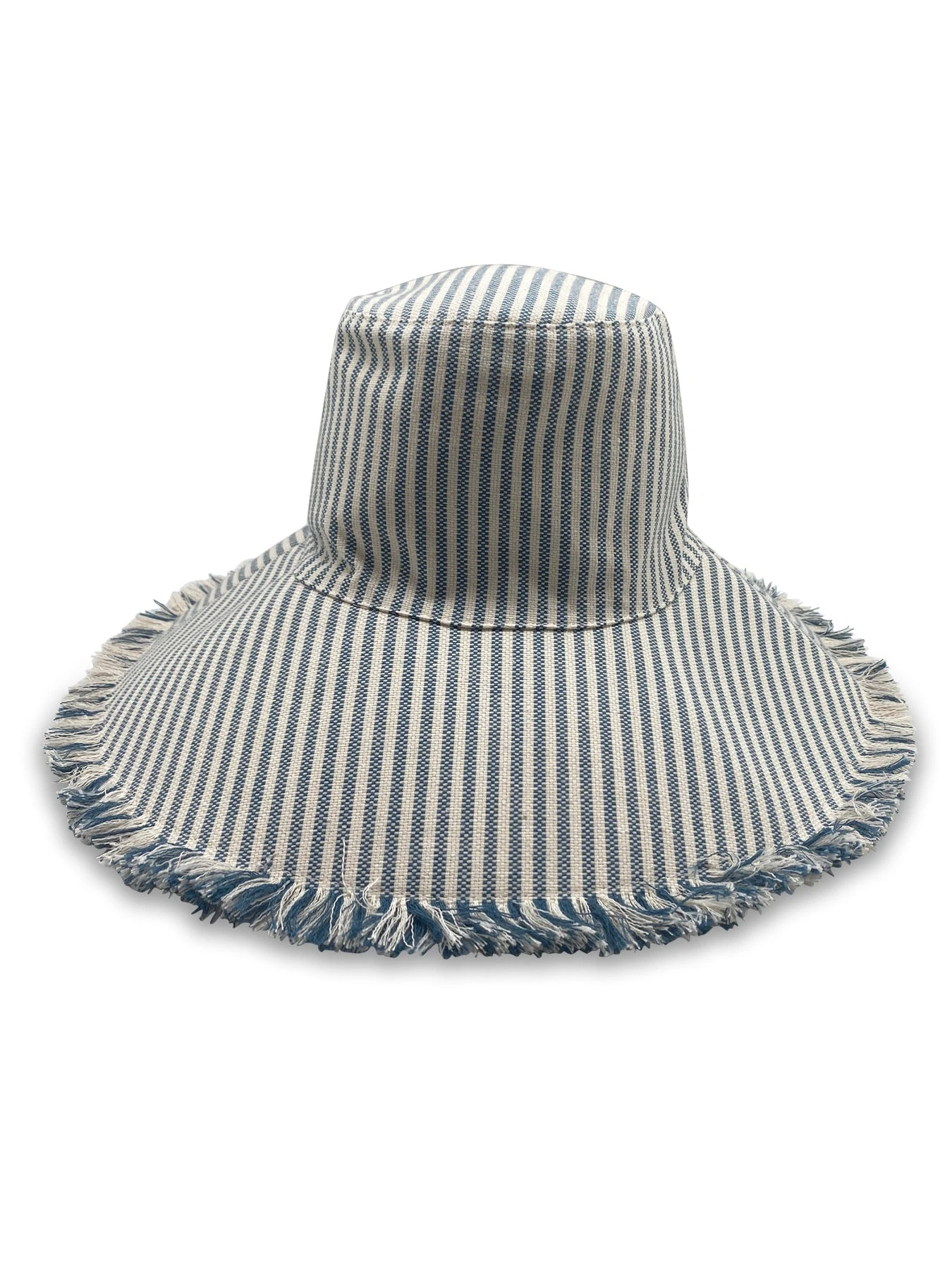 This Hat Attack Canvas Packable Hat is both classic and trendy. It has built in SPF protection and easily packable in your luggage! Keep it simple with navy stripes.
