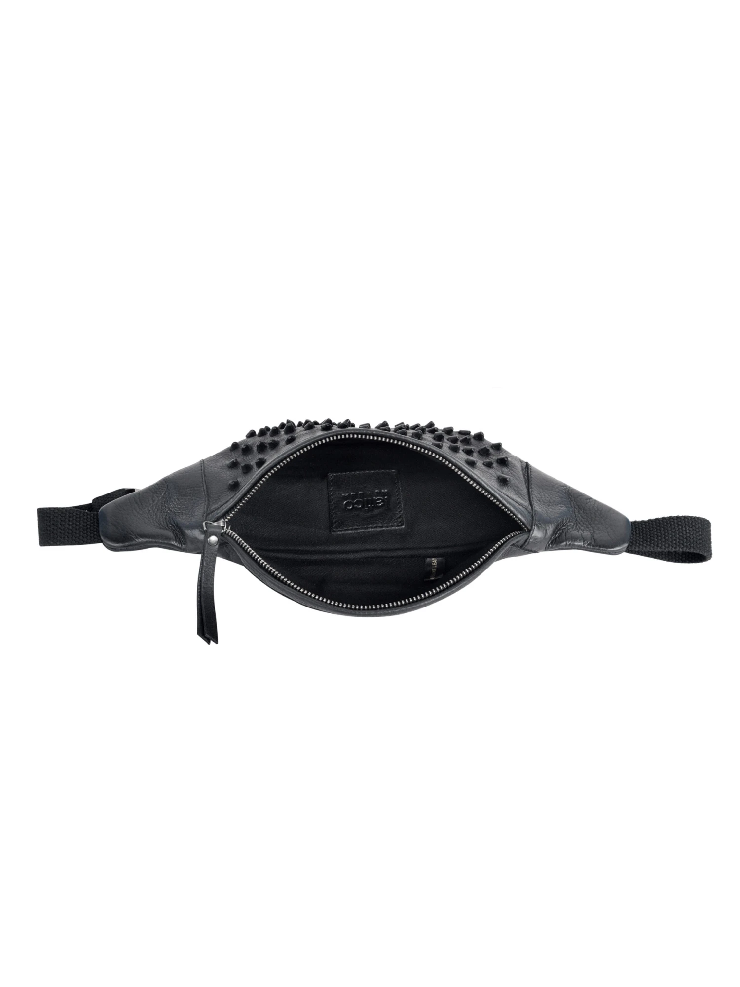 - Exterior zip pocket with leather zipper pull and slit pocket with hidden magnetic closure
