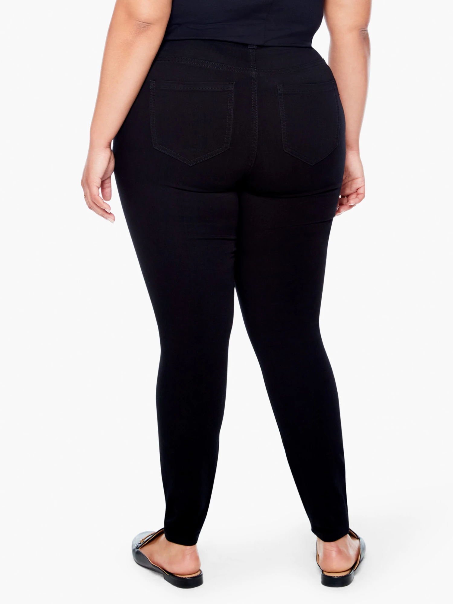 - Faux zipper with working button, 5-pocket styling details, Set-in waistband with loops