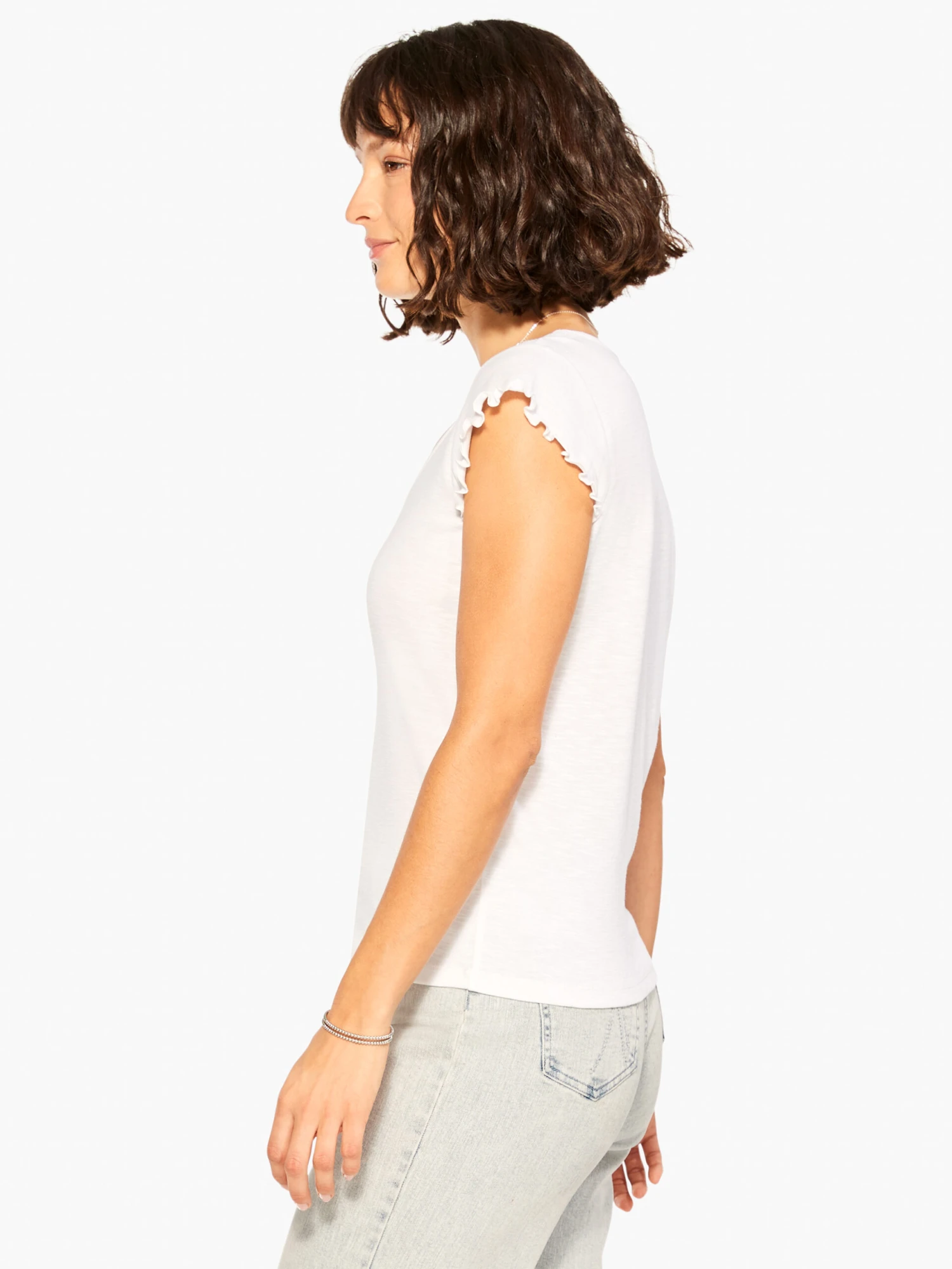 Even something with the ease of a T-shirt can make your day more stylish. The lettuce edge detailing at the cap sleeves adds interest to the classic T-shirt silhouette. We recommend wearing with denim to add a slight twist to the classic jeans and a tee look. The scoop neck adds more distinctive shape. Made from our cotton modal blend that gives a super soft feel with a great drape.