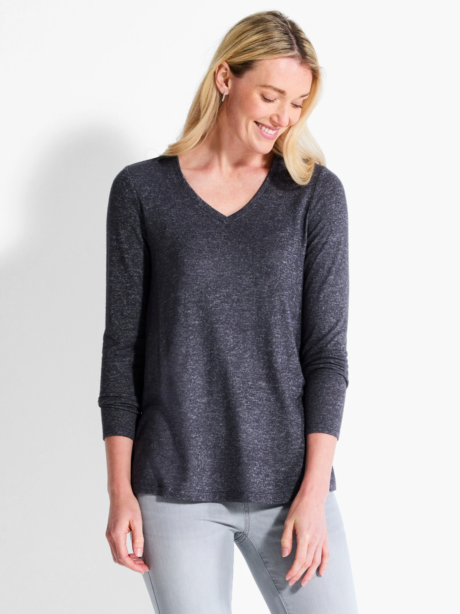 Never confuse keeping it simple for being boring. Made from our ultra-soft Sweet Dreams fabric, this easy top with a delicately textured look is exactly what you’re looking for in an effortless go-anywhere layer: nothing more, and nothing less. The V-neck is classically comfortable with any outfit, and the hem features a touch of shirttail detailing, with the front and back draping slightly longer than the sides.
