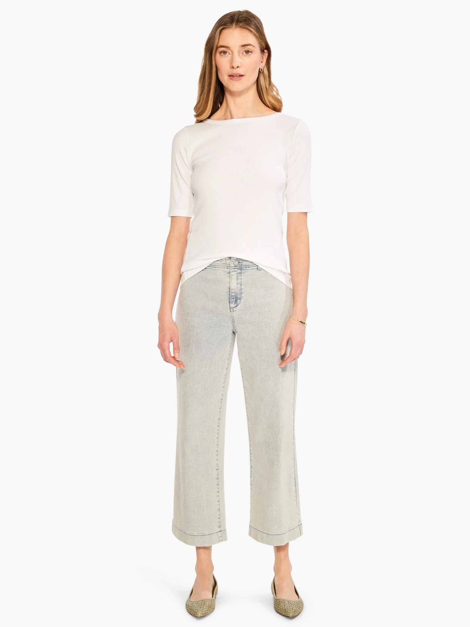 Our Perfect Knit fabric is the perfect (of course…) material for elevating the everyday basics, including this elevated essential boat neck tee. The ribbed texture adds interest and depth to the monochrome look while the silhouette is designed to be slightly more form fitting. Use it to upgrade your layering or wear it on its own with denim for a clean simple look.