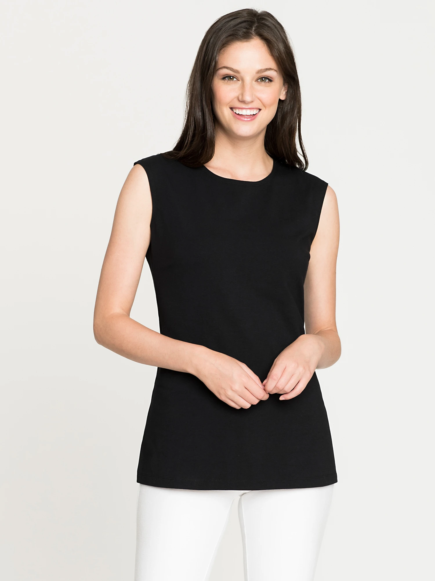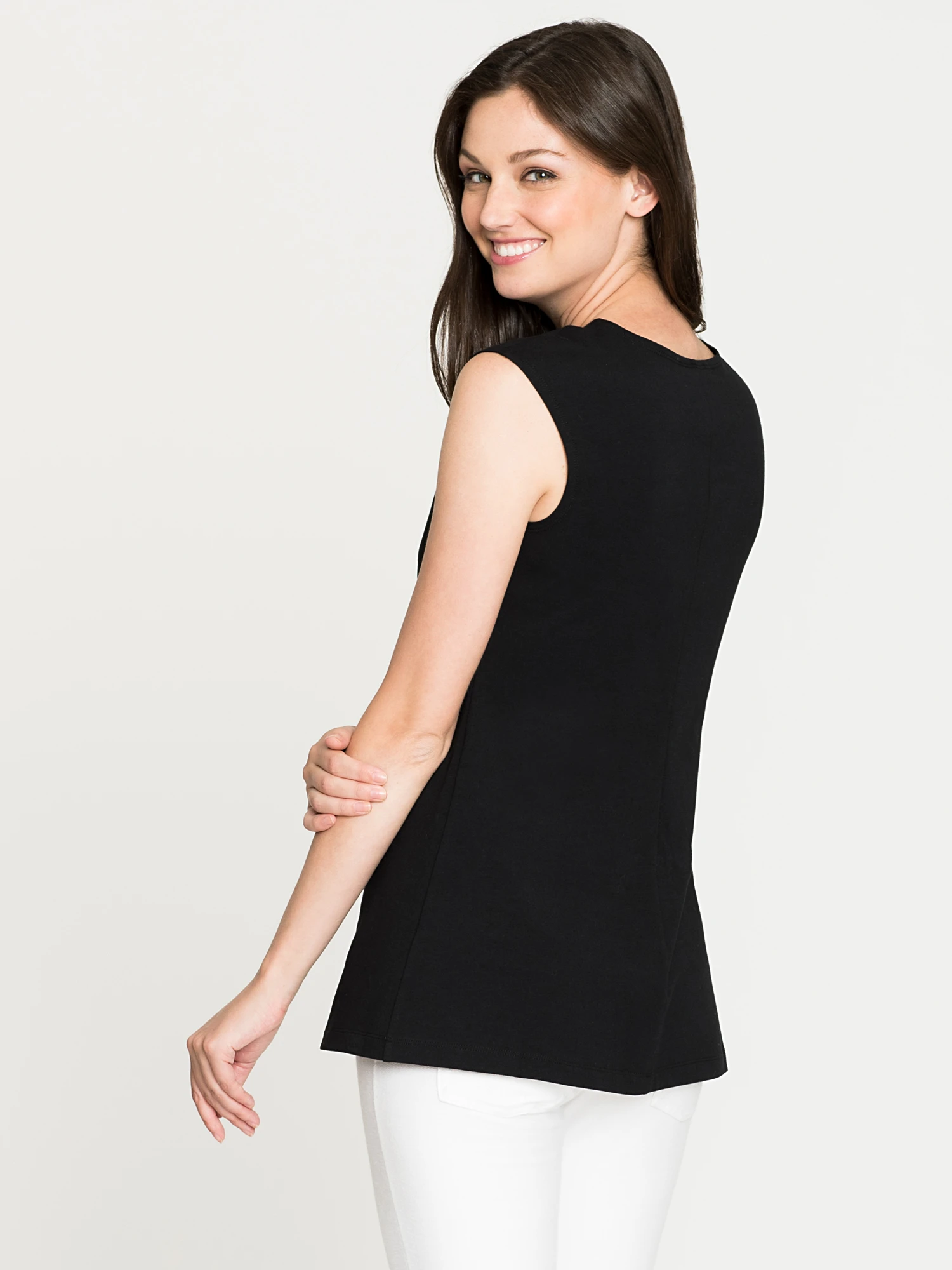A Foundation style, the Perfect Layer is available in Foundation colors as well as Collection colors. This stretch, knit jersey tank is a must-have and pairs perfectly with mid to long cardigans, jackets, and sheer blouses or can be worn on its own.