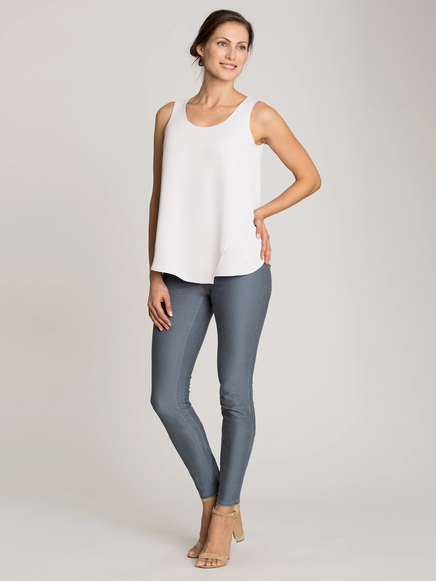 A Foundation style, the Promenade Top can be layered or worn on its own. This top is made in our signature Matte Satin fabric and features an asymmetrical double layer for easy movement.