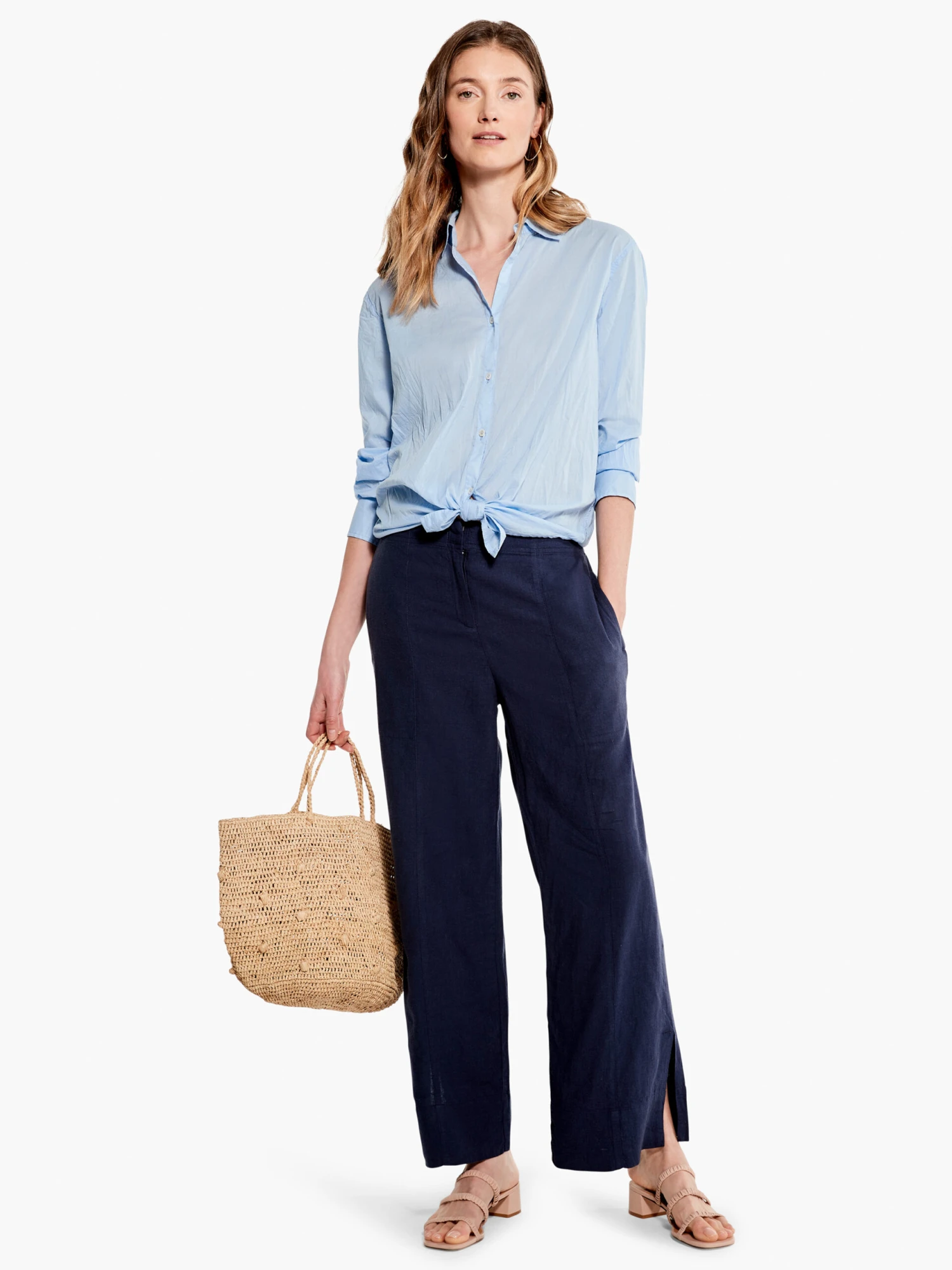 How fun are these? Made from an organic linen blend, this wideleg silhouette injects breezy confidence into your look whether you’re wearing it to work or for a night out on the town. The now-trending wide-leg silhouette sits at the waist and finished at crop length with a key slit detail. With a fly front and hook and bar closure, plus trouser pockets.