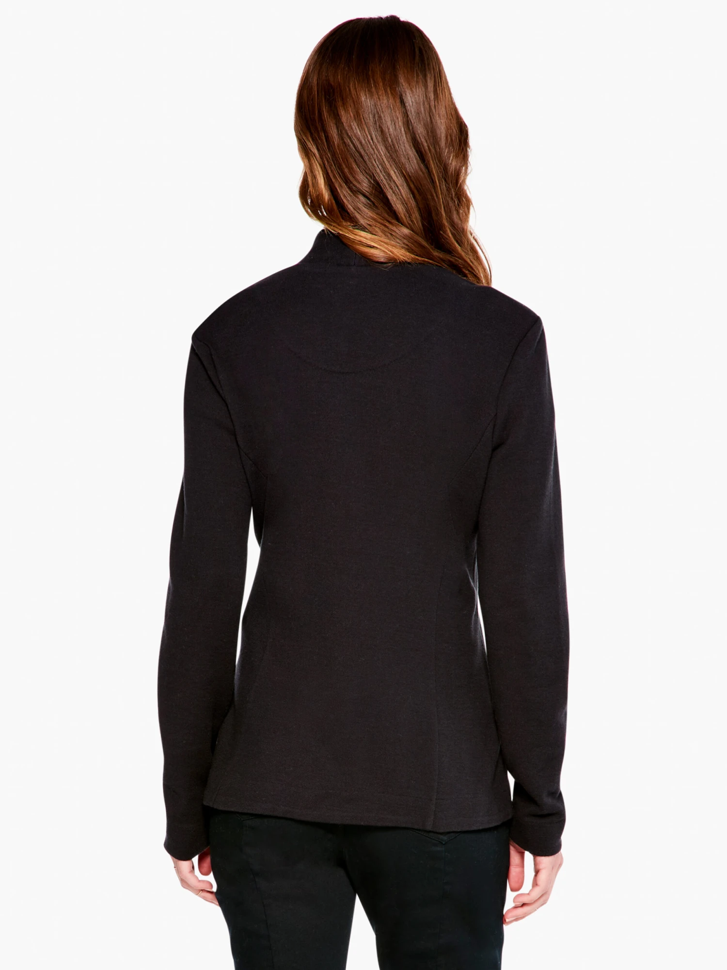 Get cozy with our version of the classic blazer in a soft, stretch knit that fits like a glove. High collar and nipped-in waist are ever so elegant AND universally flattering, while the hidden magnetic closure is pure magic.