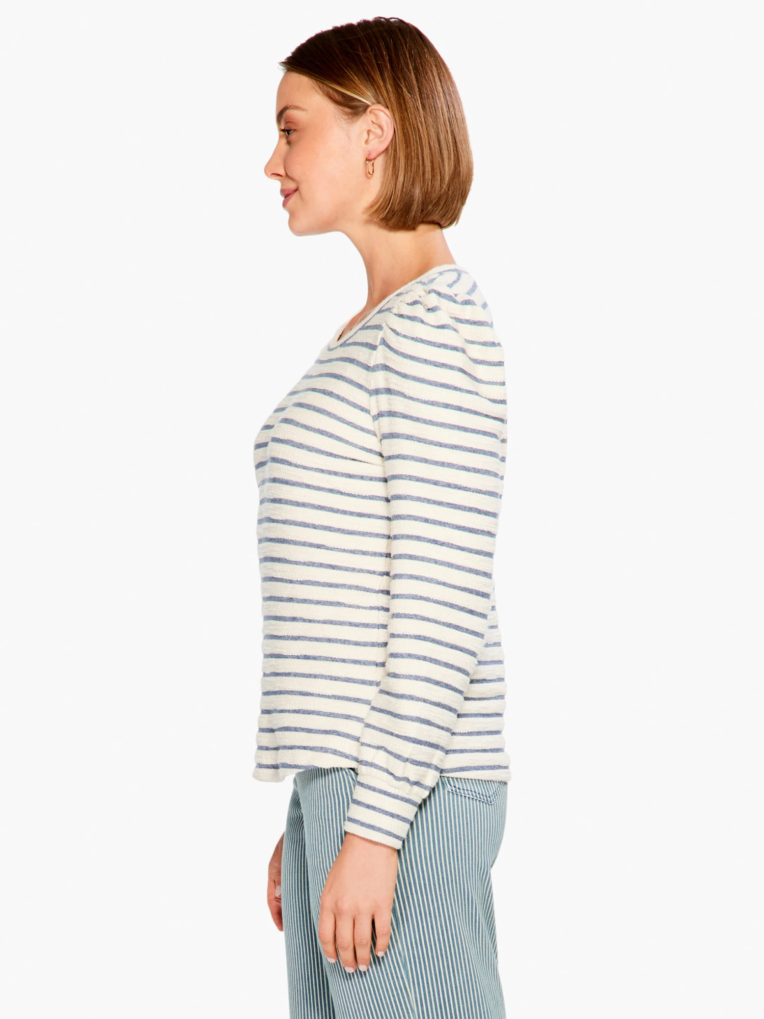 Stripes are always in. Made of 100% cotton in our super comfy loop terry fabric, this inspired long-sleeved crewneck top is easy as it gets, both in feel and when you’re looking for step one of a cool casual look. We took the time to place the stripe right on the reinforced collar to subtly lift the entire look.