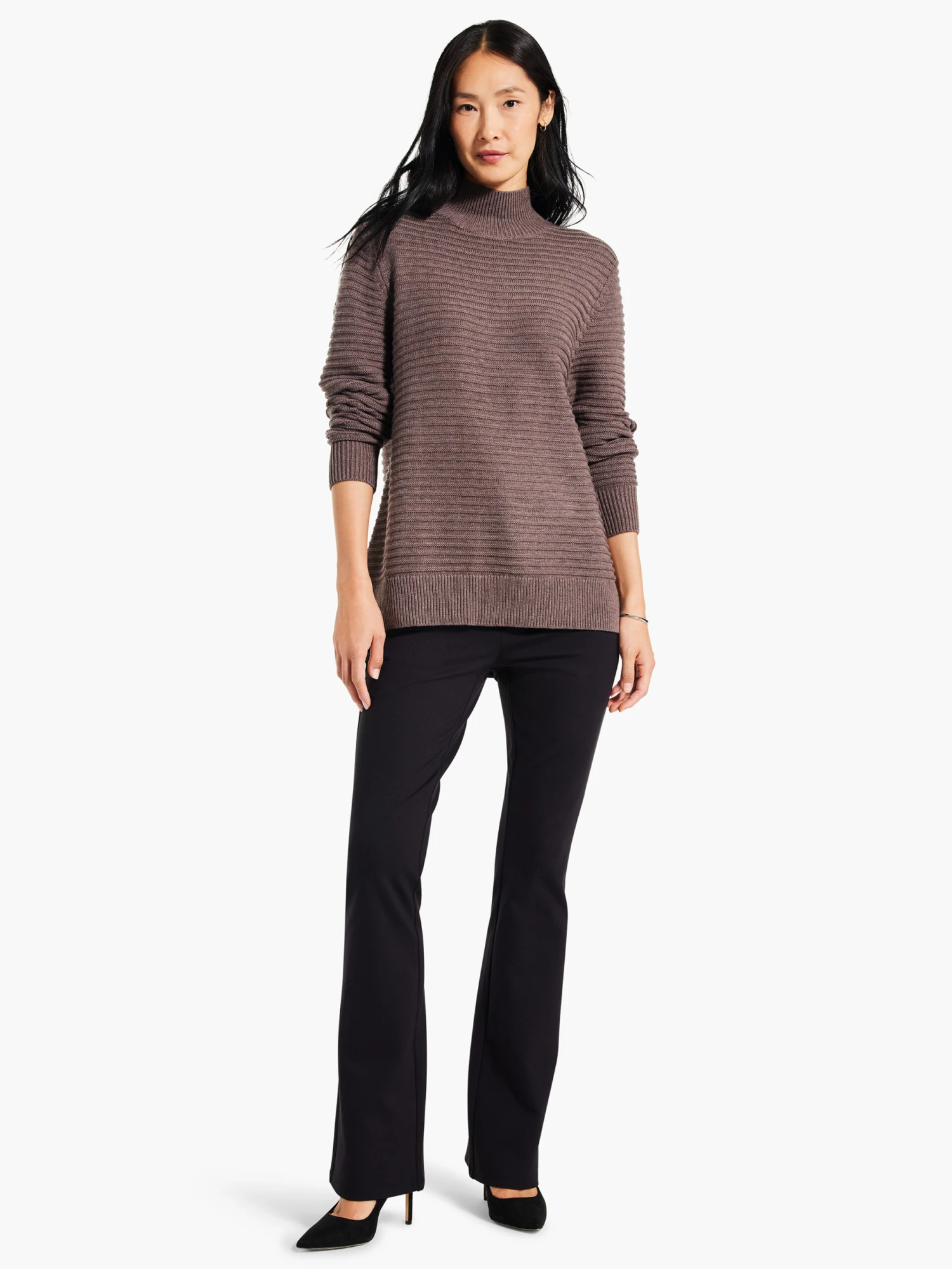 Made from our super-soft Zephyr yarn plied up to a heavier (surprisingly breezy) weight, the Textured Tunic is a subtle statement-maker with the ease of your favorite throw-on. We love the easy fit, longer hem, and textured horizontal stripe that breaks up the color block and catches the eye. With a round mock neck and ribbed cuff details, this anytime layer is always close at hand.